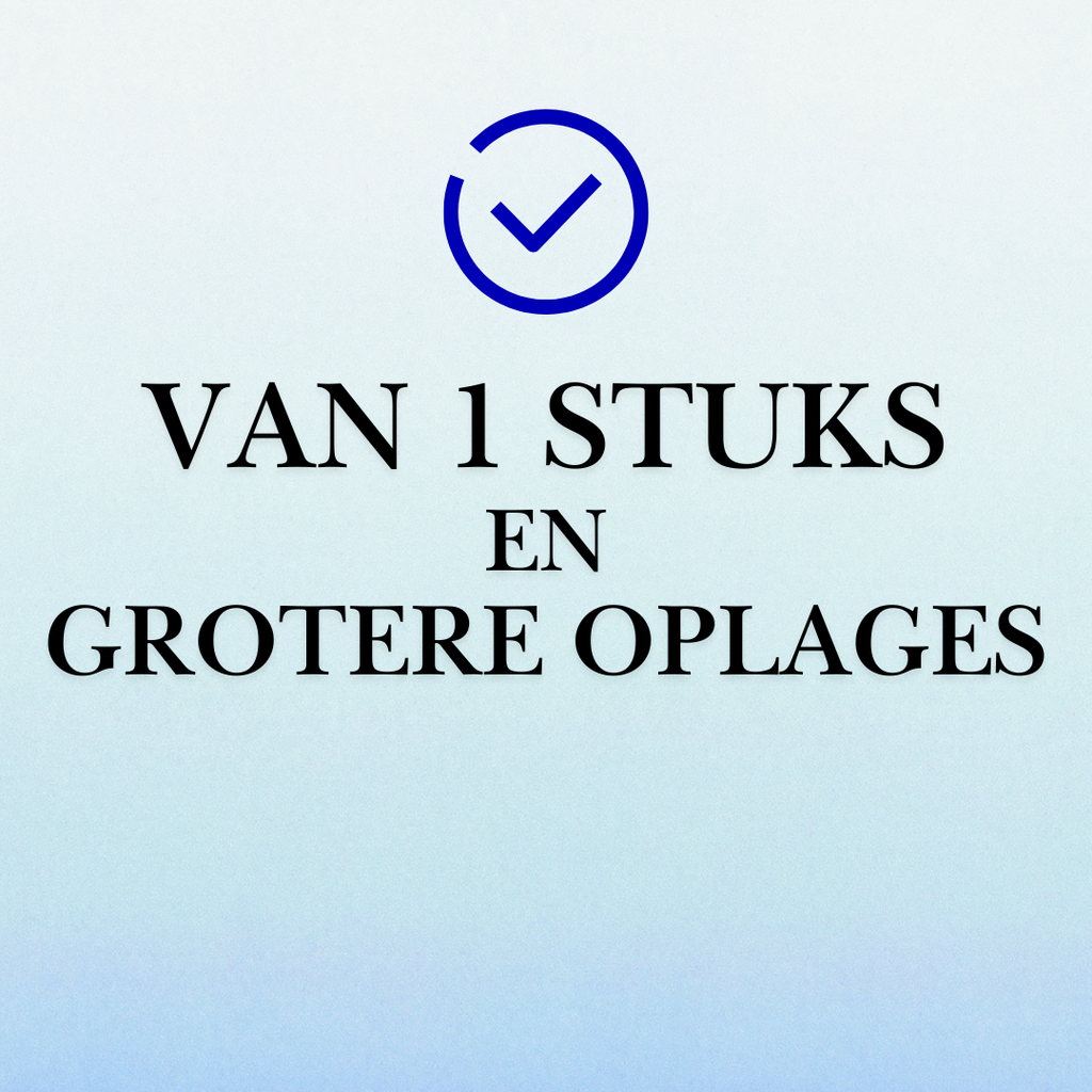 Of het nu gaat om een kleine oplage of een grotere bestelling: wij leveren strak printwerk met oog voor detail. Heb je al een ontwerp? Dan kun je jouw bestand eenvoudig aanleveren en gaan wij direct voor je aan de slag.